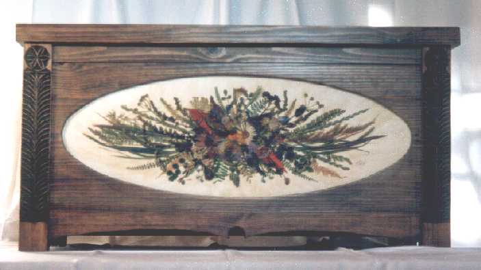 pino tinta noce , gli intarsi sono eseguiti a mano e lucidata